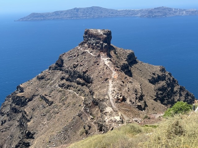 We will do a walking tour along the crater rim from Fira to Oia – maybe a short excursion to see Skaros Rock and catch a bus back.